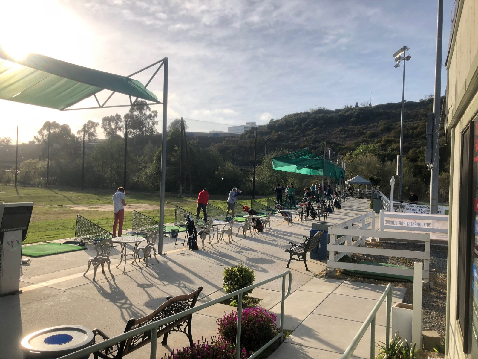 The driving range features lights that will enable you to continue practicing your golf swing even after the sun has set.